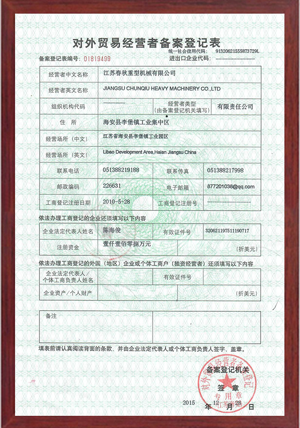 對(duì)外貿(mào)易經(jīng)營者備案登記表