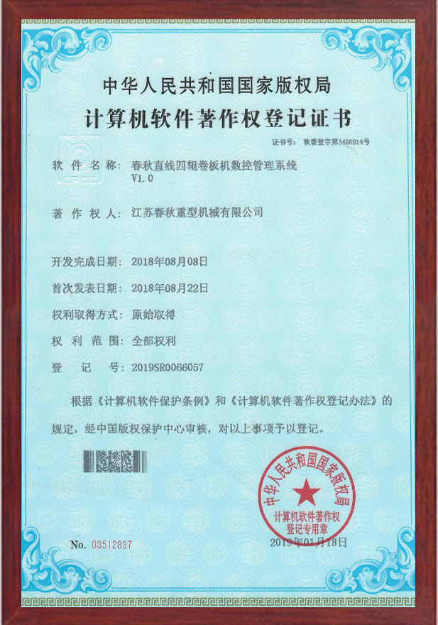 直線四輥卷板機數(shù)控管理系統(tǒng)軟件著作權(quán)